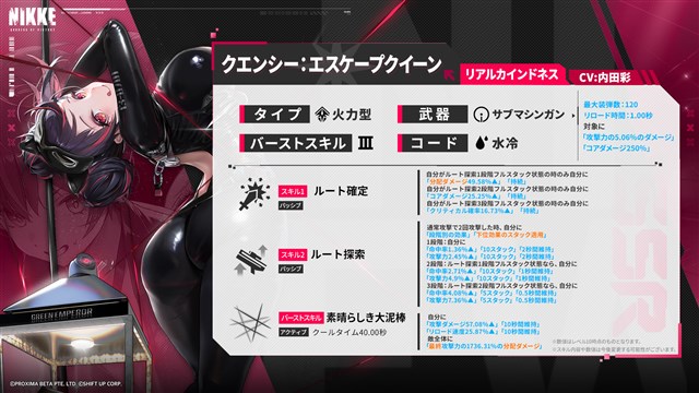 正義のため、怪盗に変身したSSRニケ「クエンシー:エスケープクイーン」が特殊募集で登場する。