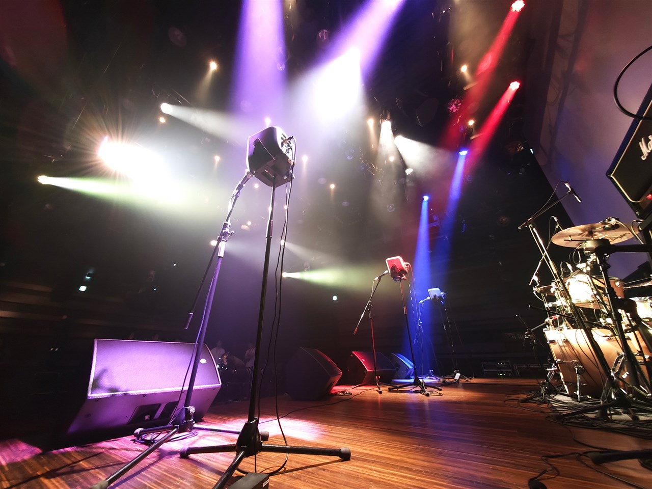 通常ライブハウスでライブを行う場合と同様のマイキング・音響システムによる音響、映像、照明演出を行っている。また、各メンバーの身長に合わせた発音位置に歌唱・MC用スピーカーの設置や足元には演奏のモニターを行うスピーカーの設置を行い、ステージの中の音の再現にも挑戦している。