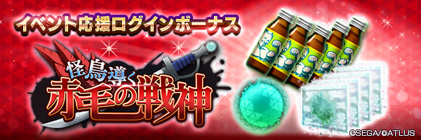 イベントアウラゲート“怪鳥導く赤毛の戦神”の開催に合わせて、「空の因子」などが獲得できるイベント応援ログインボーナスを実施する。この機会をお見逃しなく!