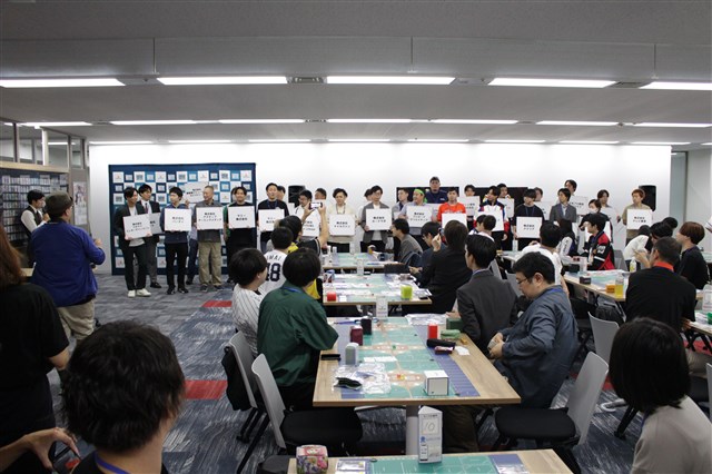 会場の全員が見守る中、見事勝利を掴んだのは株式会社バンダイ「BCGブシロード部」。試合中はダイス運に悩まされて黒星をつけてしまっていたが、最後には運も味方して優勝に至った。