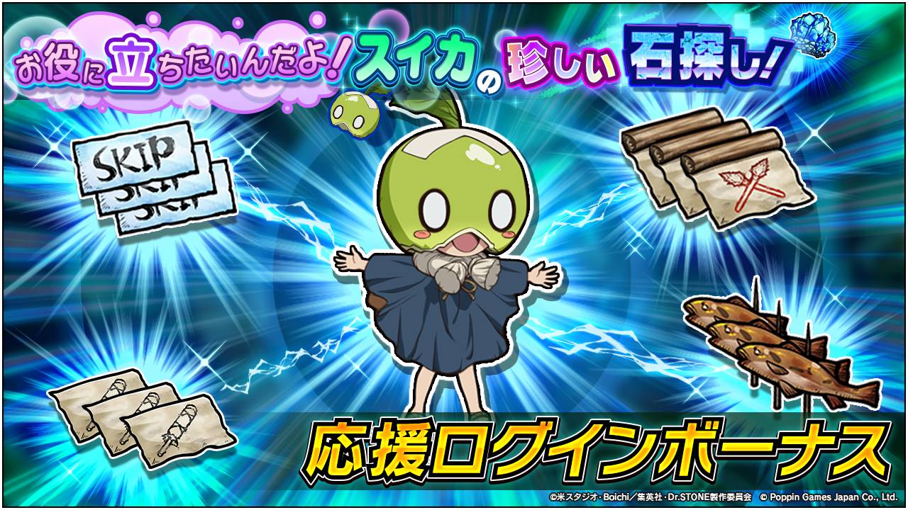 ポッピンゲームズジャパンは、AppStore/GooglePlayで配信中の『Dr.STONE バトルクラフト』にて新イベントを開始した。
