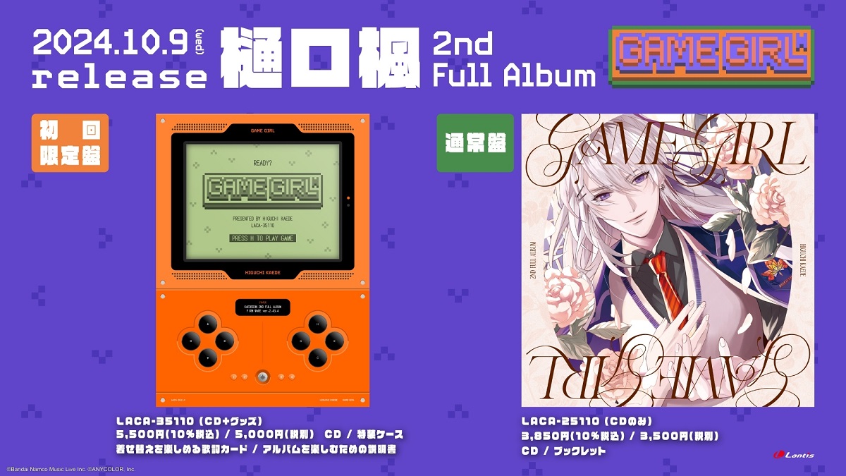 ANYCOLORの「にじさんじ」、樋口楓 2ndフルアルバム「GAME GIRL」を発売…ソロライブツアー「Higuchi Kaede 2024-2025 LIVE Tour “BREAKING”」東京公演の情報も公開