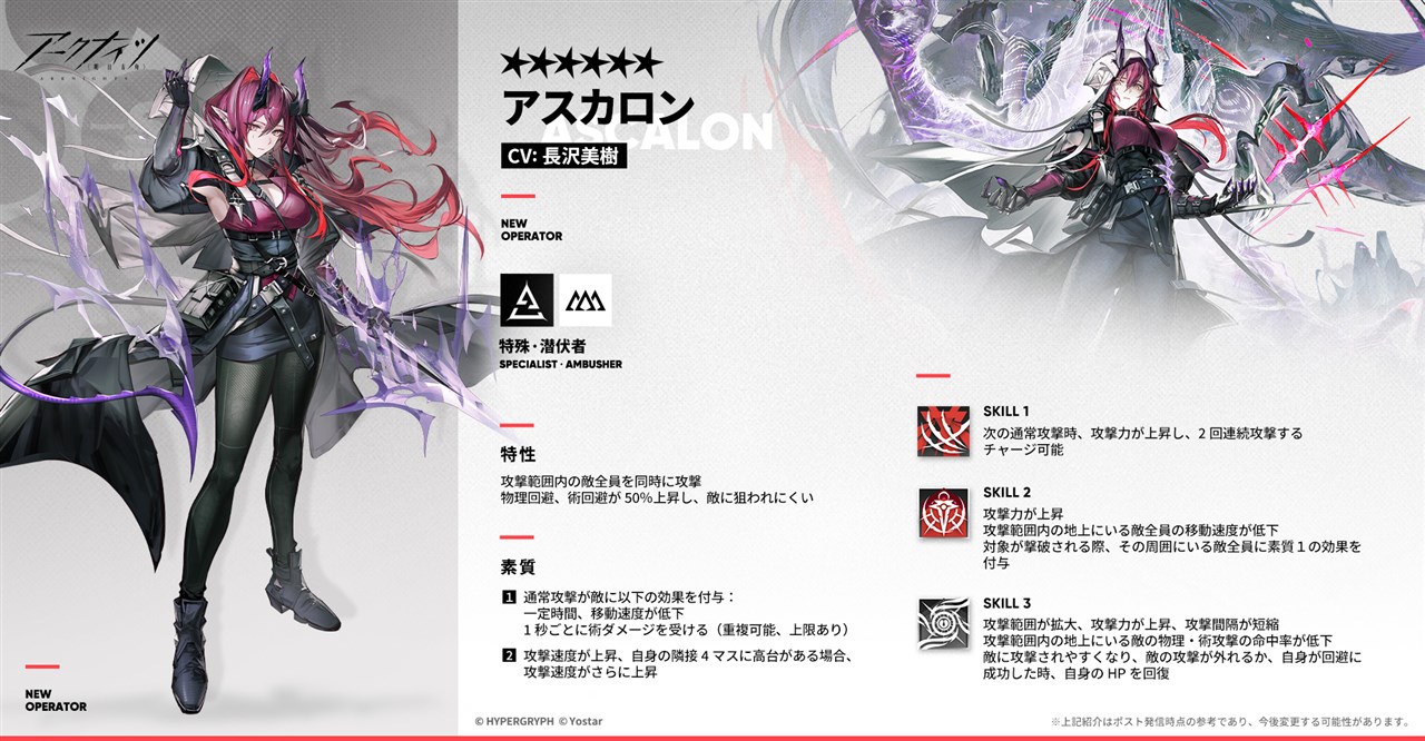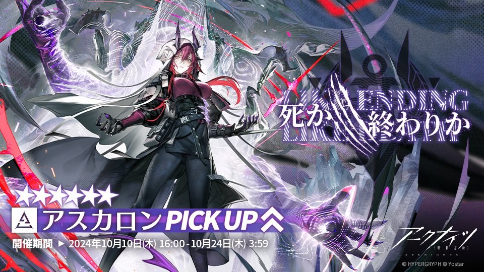 本日16時よりイベントスカウト「死か/終わりか」を開催する。敵の移動速度を低下させ、継続術ダメージを与える素質を持ち、通常攻撃を行う度に効果を重ねられる特殊オペレーター「★6 アスカロン」など、頼もしいオペレーターを採用するチャンスとなっている。