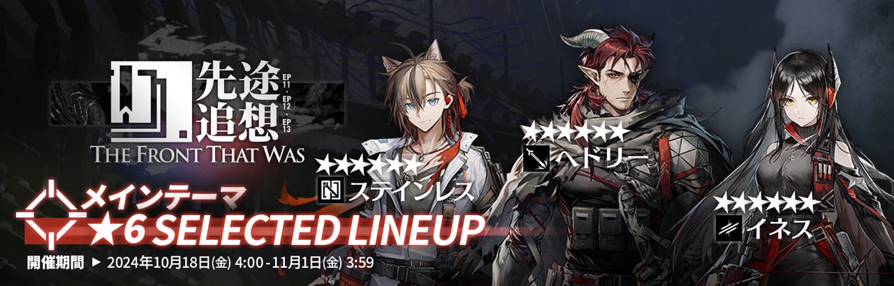 10月18日4時よりメインテーマスカウト「先途追想」を開催する。本スカウトでは、★6オペレーターは下記のオペレーターのみスカウトできる。