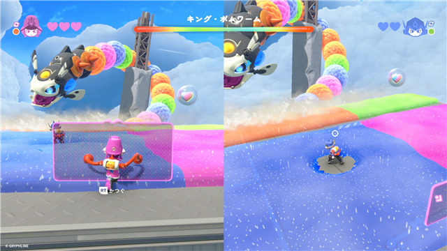 道中には、攻撃を仕掛けてくる敵も出現。各プレイヤーにはライフが定められており、これが0になるとゲームオーバーとなる。ボムを撃つことで敵と同じ色を3つ揃えて倒そう!このほか、ステージ自体に仕掛けられたギミックなどもあり、多くの難所を越えていく必要がある。