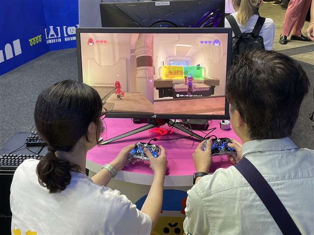 ▲2人で遊べば盛り上がれること間違いなしの作品。試遊ブースでも、仲良さげなカップルや親子らがゲームを楽しんでいた。