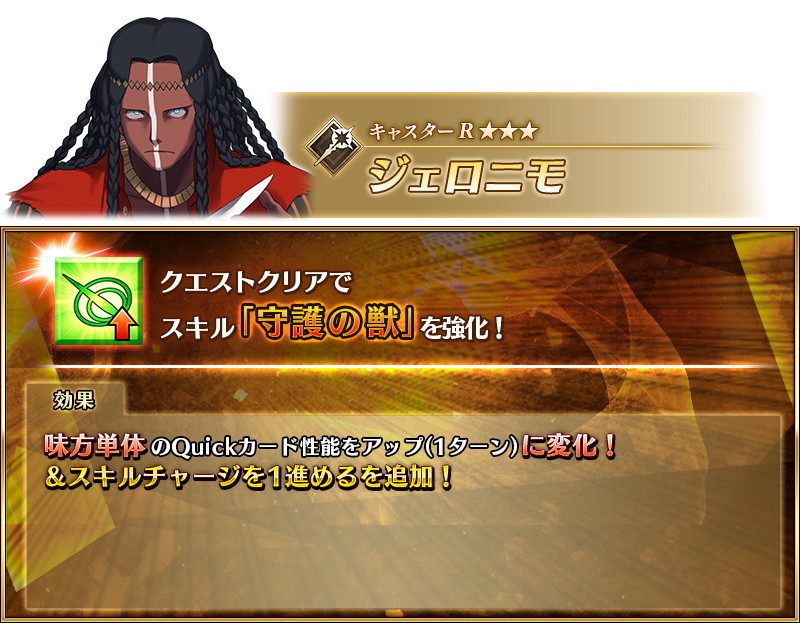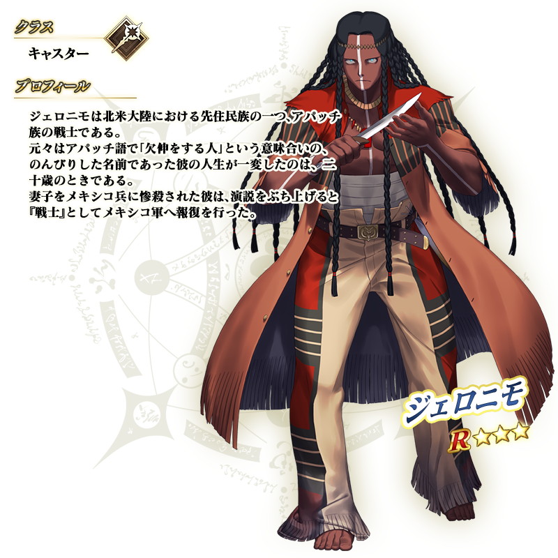 ※上記の「★3 ジェロニモ」のイラストは霊基再臨第2段階のものだ。