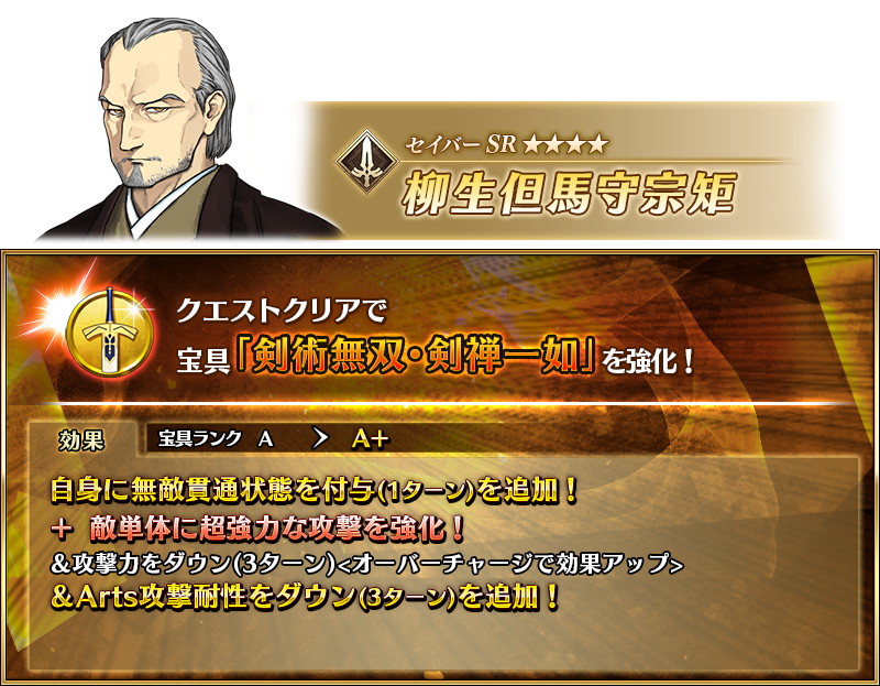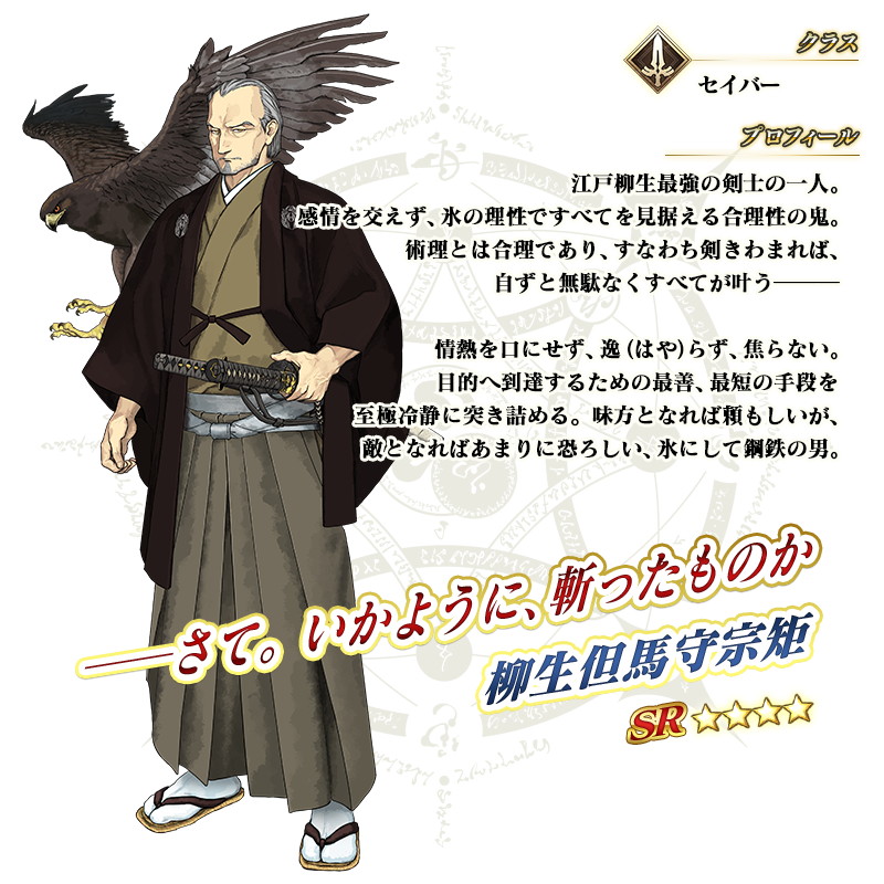 ※上記の「★4 (SR)柳生但馬守宗矩」のイラストは霊基再臨第2段階のものだ。