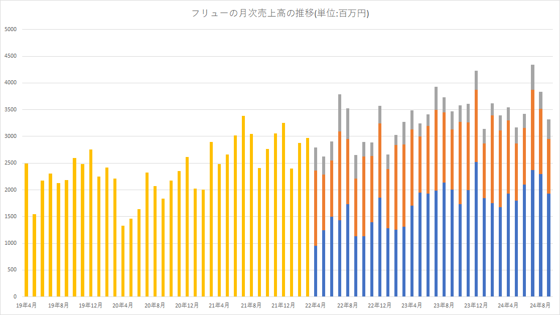 フリュー<6238>は、この日(10月18日)、2024年9月の月次売上速報を発表し、前年同月比4.5%減の33億1800万円だったと発表した。今期2度目の前年比マイナスとなった。2024年4月からの累計は、同1.6%増の216億2800万円と前年比プラスをキープした。