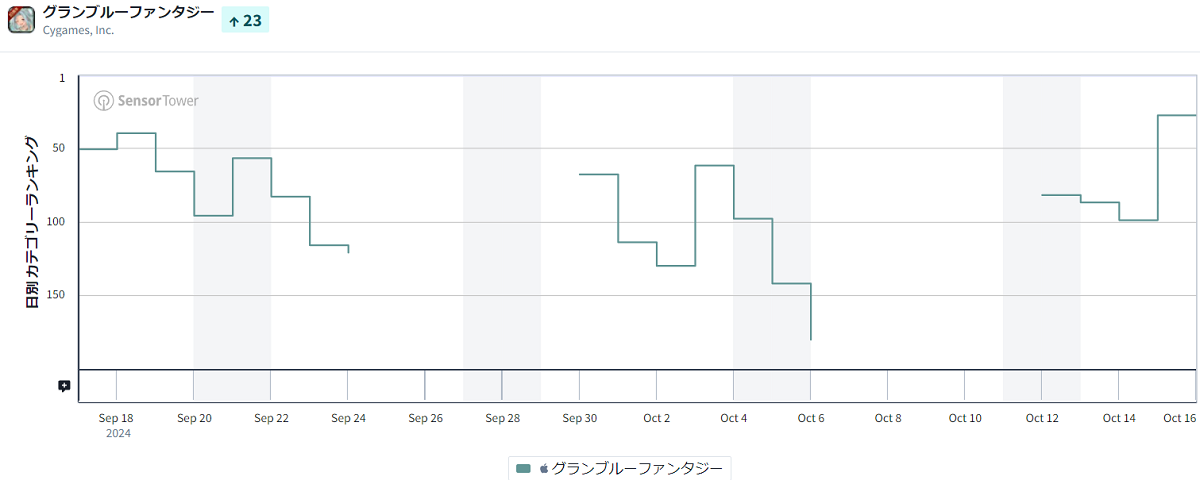 71ランクアップでトップ30に復帰を果たしたのは、Cygamesの『グランブルーファンタジー』だ。