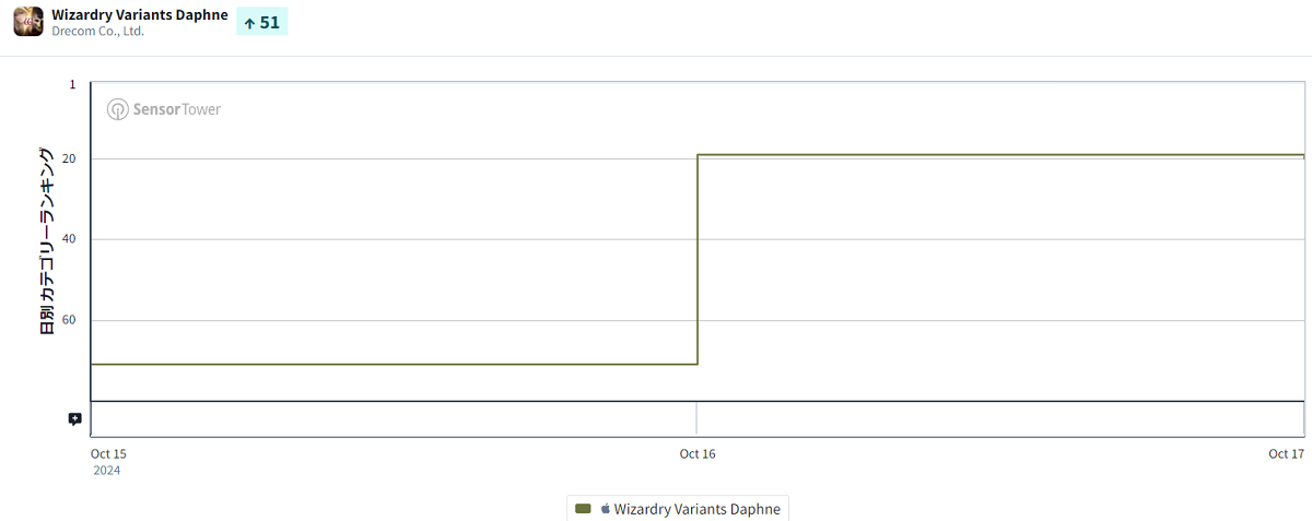 またこの日、ドリコム<3793>から10月15日にリリースされた、「Wizardry(ウィザードリィ)」シリーズ最新作のスマートフォン向け3DダンジョンRPG『Wizardry Variants Daphne(ウィザードリィ ヴァリアンツ ダフネ)』が20位にランクインした。