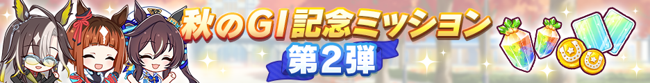 秋のGⅠレースの開催にあわせて、10/21 12:00からホームの[ミッション]に期間限定ミッションが登場。
