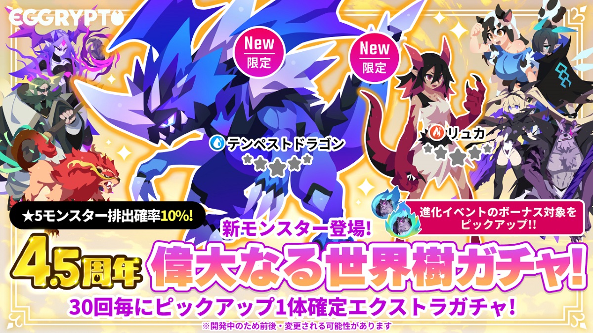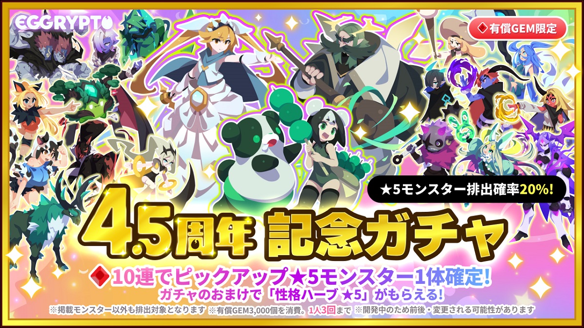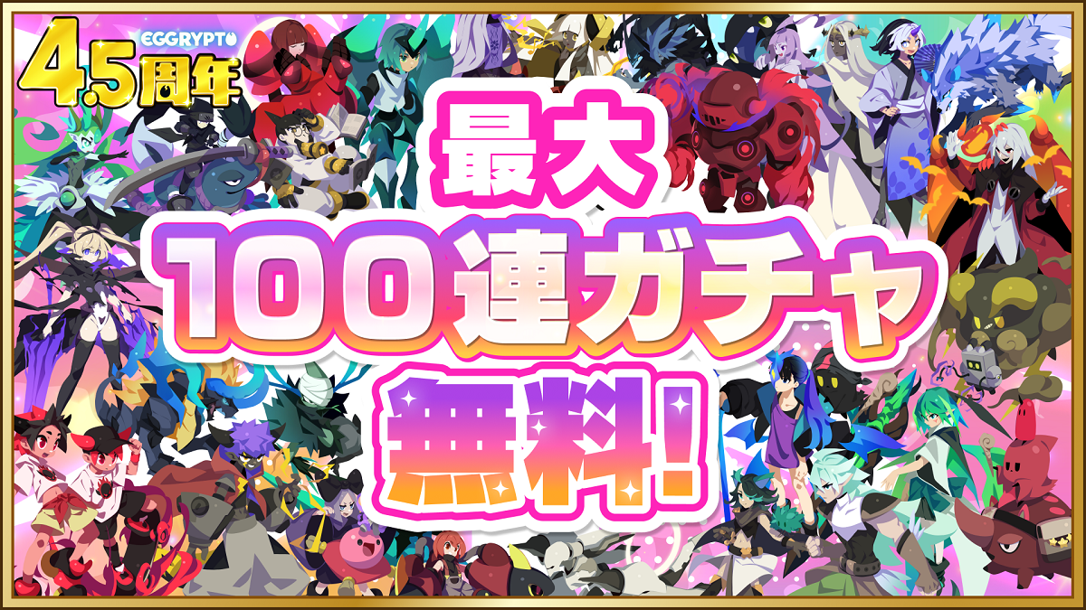 Kyuzan、NFTゲーム「EGGRYPTO(エグリプト)」が4.5周年 無料100連ガチャプレゼント等のログボを含む周年記念CPを開催