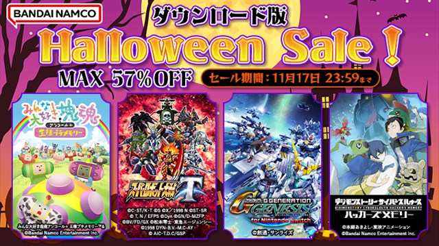バンダイナムコエンターテインメントは、「ダウンロード版セール」を開催中であることを発表した。PlayStation Storeでは『リトルナイトメア2 デラックスエディション』が45%OFF、『ACE COMBAT 7: SKIES UNKNOWN Ultimate Edition』が50%OFF、『SAND LAND』が34%OFFになるなどお買い得に!さらに、ニンテンドーeショップでは『SDガンダム ジージェネレーション クロスレイズ』が36%OFFになるこの機会をお見逃しなく!また、10月31日のハロウィンにあわせた期間限定セールも開催中。
