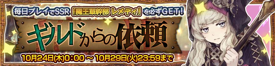 今回の“ギルドからの依頼”イベントでは、特別報酬としてSSR「魔王軍幹部 レメディ」が一定確率で入手できる。