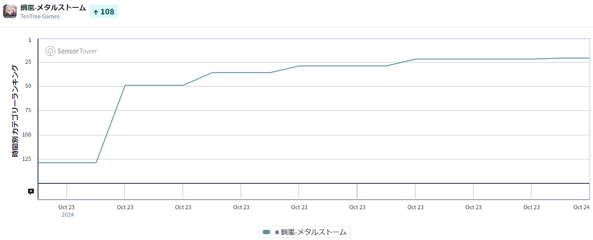 そして、21位にランクインしたのは、HK TEN TREEから10月23日にリリースされた、ハイエンドメカSRPG『鋼嵐 - メタルストーム』だ。