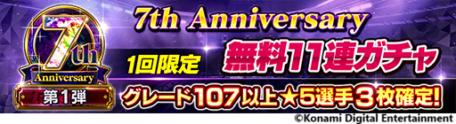 7周年の感謝を込めて「デイリーギフト」や「7th Anniversary 無料11連ガチャ」等のイベントを開催しているほか、『ウイコレ』を始めたばかりのユーザーと相互フォローとなり、条件を満たすと豪華アイテムを獲得できる「ルーキー相互キャンペーン」や「LEGENDS」シリーズの選手が特別に出現する11連ガチャ「7th Anniversary 超プロメテウスガチャ」なども開催中。