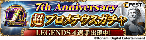 「7th Anniversary 超プロメテウスガチャ」では「LEGENDS」シリーズからピックアップされた4選手が出現中。ロナウジーニョなど憧れの選手を獲得できるこの機会をお見逃しなく!