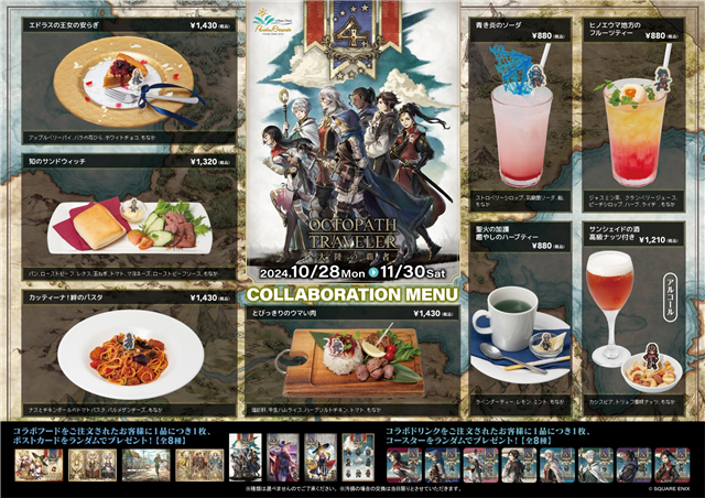 スクウェア・エニックスは、スマートフォン向けRPG『OCTOPATH TRAVELER(オクトパストラベラー)大陸の覇者』において、10月24日17:00より、リリース4周年を記念し、追憶の旅人限定キャラクター&Exジョブキャラクターとして盗賊“エリカ”、狩人“ディトレイナ”が登場したことを発表した。また、新たなクロスストーリー「正義の怪盗」-前編-が追加されたほか、期間中ゲームにログインすることで、ルビー1,000個をはじめとする記念プレゼントを受け取ることができる。さらに、10月28日より、人気キャラクター8名をモチーフとしたフード・ドリンクメニューが楽しめる「カラオケパセラ」とのコラボを期間限定で開催する。