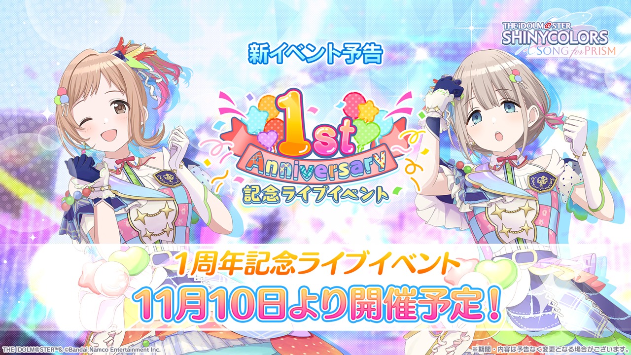 また、11月10日からは、1周年記念ライブイベントが開催予定。