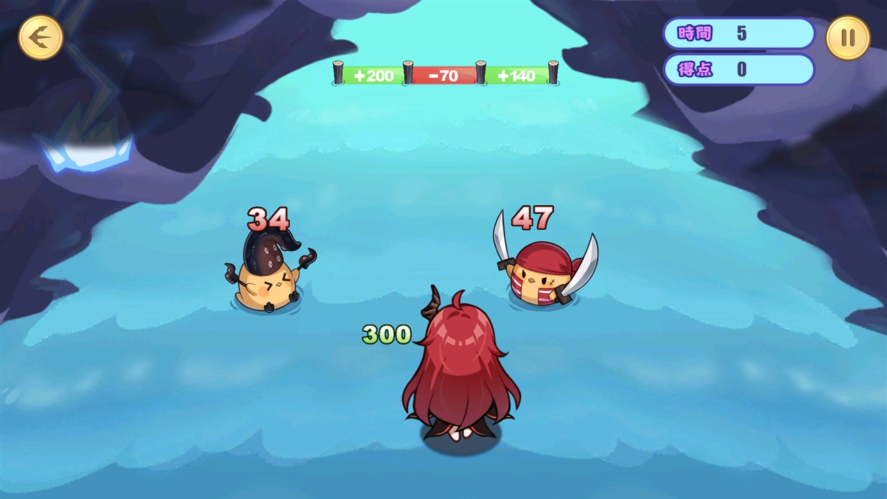 「出撃!饅頭海賊団!」は、キャラを操作して左右に移動し、自身を強くして敵を倒してスコアを稼ぐミニゲーム。キャラの耐久が0になるか、左上のボタンでゲームを終了するとステージクリアになる。ミニゲームを7日間プレイすることで、新規テンペスタ設備「酒類補給品」を入手できる。