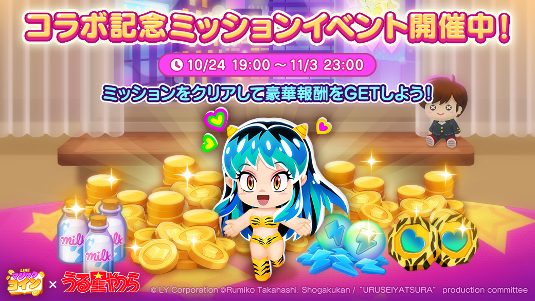 LINEヤフー<4689>は、カジュアルコインゲーム「LINE マジックコイン」(iPhone・Android対応/無料)と、『TVアニメ「うる星やつら」』とのコラボレーションイベントを開催することを発表した。
