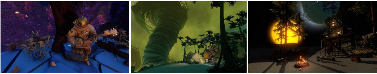 木の炉辺という小さな惑星、たき火の前で目覚めるところからゲームは始まる。新米の宇宙飛行士であるプレイヤーは、初飛行の夜、"22分"を繰り返すループに囚われてしまう。謎に満ちた宇宙を舞台に、時間と共に変化する惑星などを探索し、