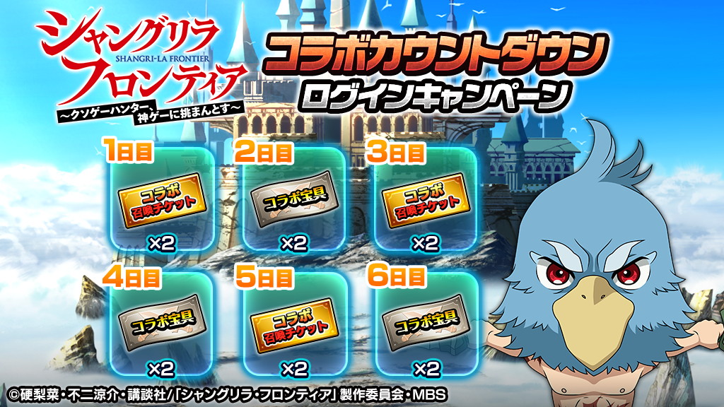 ■コラボ召喚チケットが毎日もらえる!『シャングリラ・フロンティア』コラボカウントダウンログインキャンペーン!