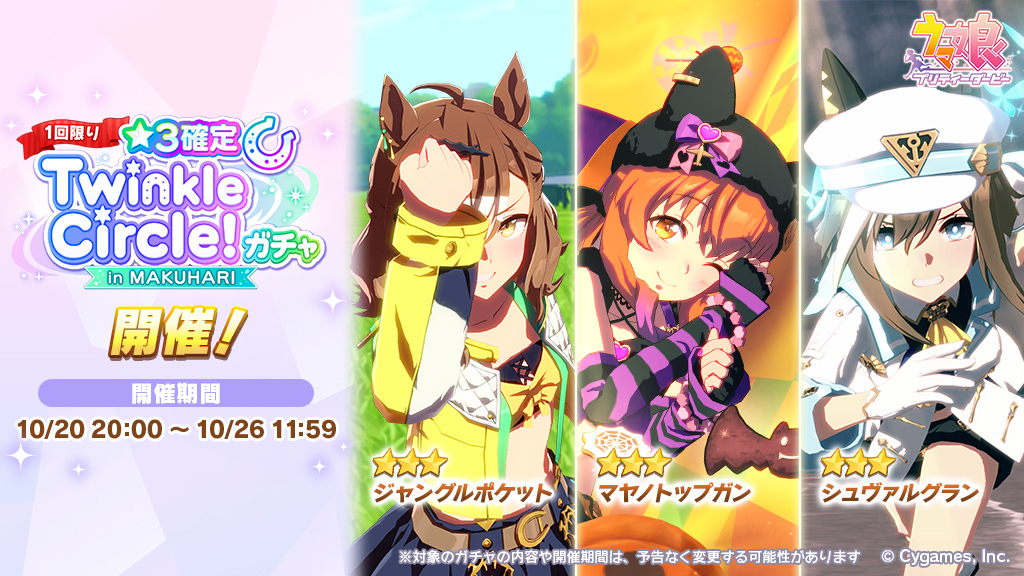 『ウマ娘』は10月20日20時より、「ウマ娘 プリティーダービー Twinkle Circle! in MAKUHARI」の公演の開催を記念した「★3確定Twinkle Circle!ガチャ in MAKUHARI」を開催中。
