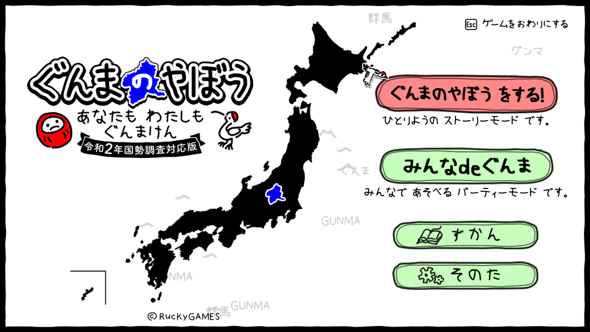 『ぐんまのやぼう わたしもあなたもぐんまけん 令和2年国勢調査対応版』を始め、最近のRucKyGAMES作品を登録予定。誰でも自由に閲覧できる、オンライン上の創作発表イベントとなる。