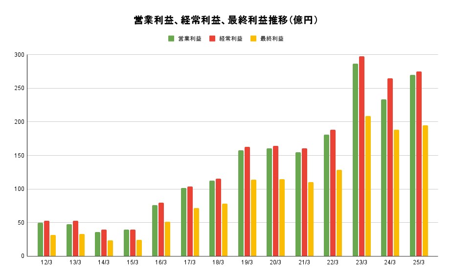 - 売上高1008億3600万円、営業利益324億3200万円、経常利益331億8800万円、最終利益236億2300万円(2025年3月期)