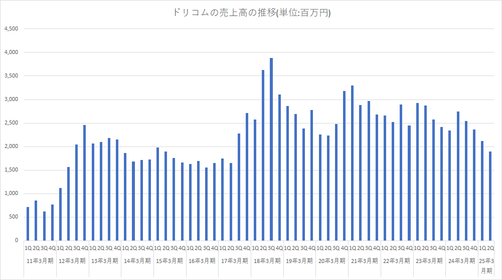 ドリコム<3793>は、10月29日、2025年3月期 第2四半期累計の連結決算を発表し、売上高40億1800万円(前年同期比21.1%減)、営業損失3億1500万円(前年同期は4億7200万円の利益計上)、経常損失3億5400万円(同4億5300万円の利益計上)、最終損失10億2200万円(同1億6900万円の損失計上)だった。