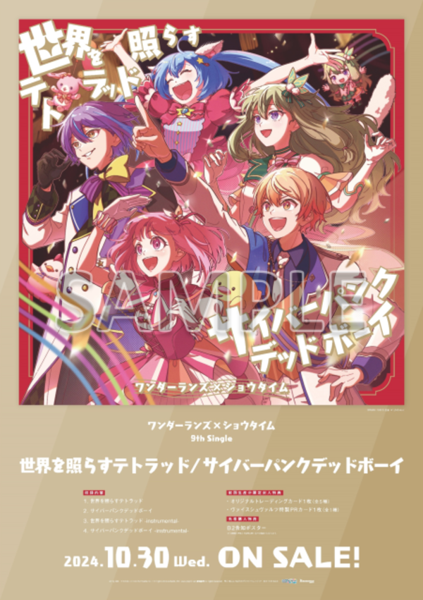 ブシロードミュージックは、iOS/Android向けリズム&アドベンチャー『プロジェクトセカイ カラフルステージ! feat. 初音ミク(以下、プロジェクトセカイ)』より、ワンダーランズ×ショウタイム 9th Single「世界を照らすテトラッド/サイバーパンクデッドボーイ」(発売元:ブシロードミュージック)をリリースした。