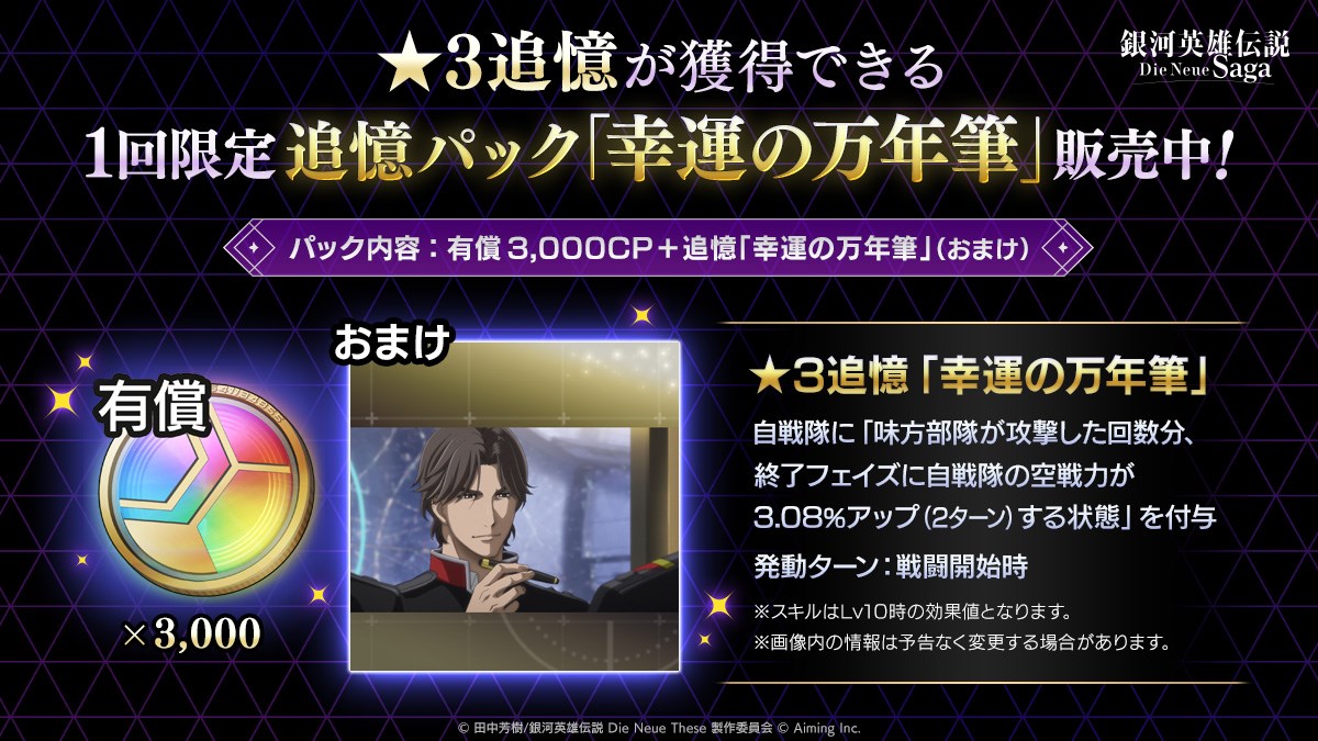 パック内容:有償3000CP+★3追憶「幸運の万年筆」(おまけ)