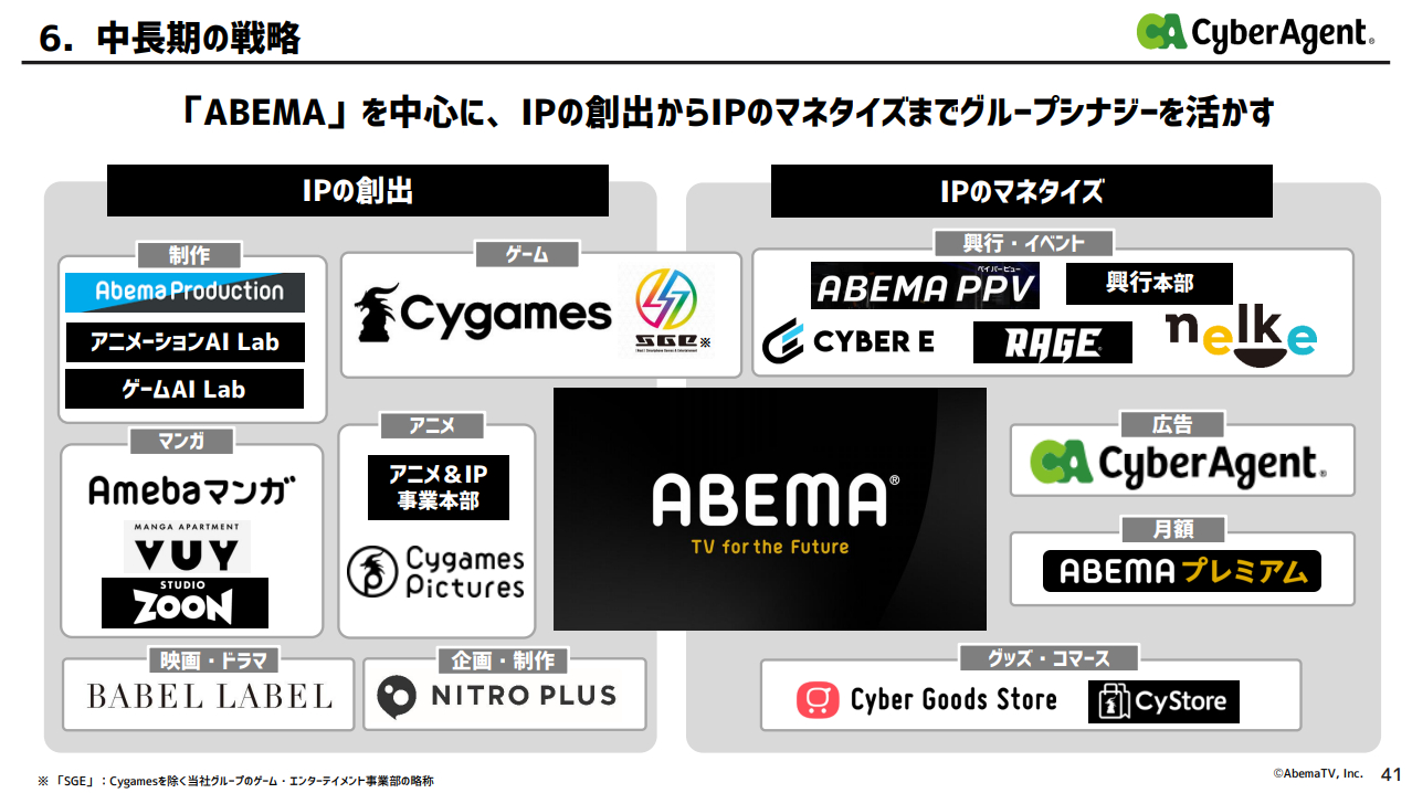 藤田社長によると、「ABEMA」の視聴者の半分がアニメを視聴しているとのことで、IPを育てる力、展開できる力がグループ内に備わってきたということでもあるという。ニトロプラスがグループに加わったが、今後、「ABEMA」を基盤としてグループシナジーを効かせながらIP創出を目指していく。