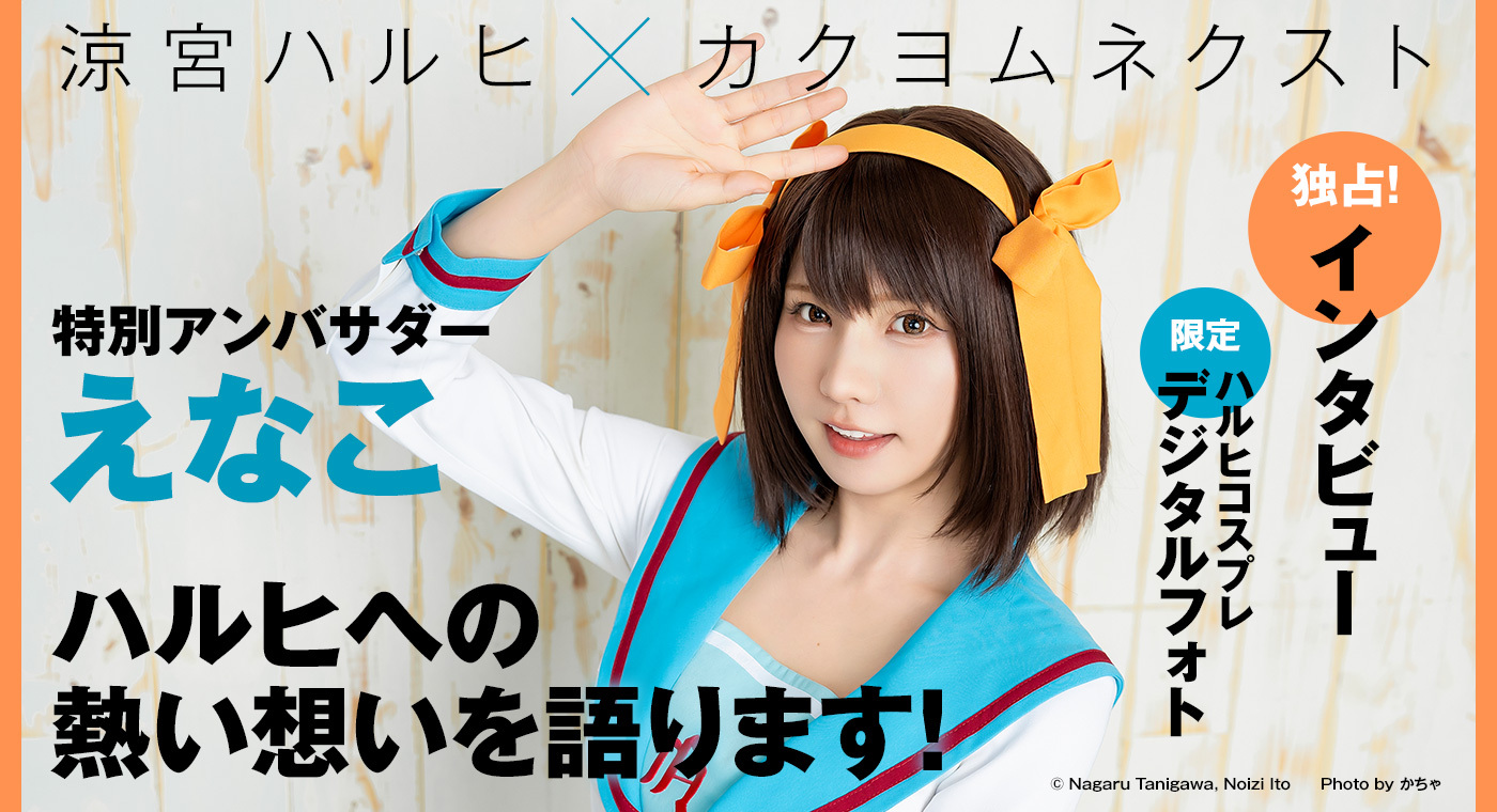 「涼宮ハルヒ×カクヨムネクスト企画」の特別アンバサダーとして、人気コスプレイヤーの"えなこ"が登場!