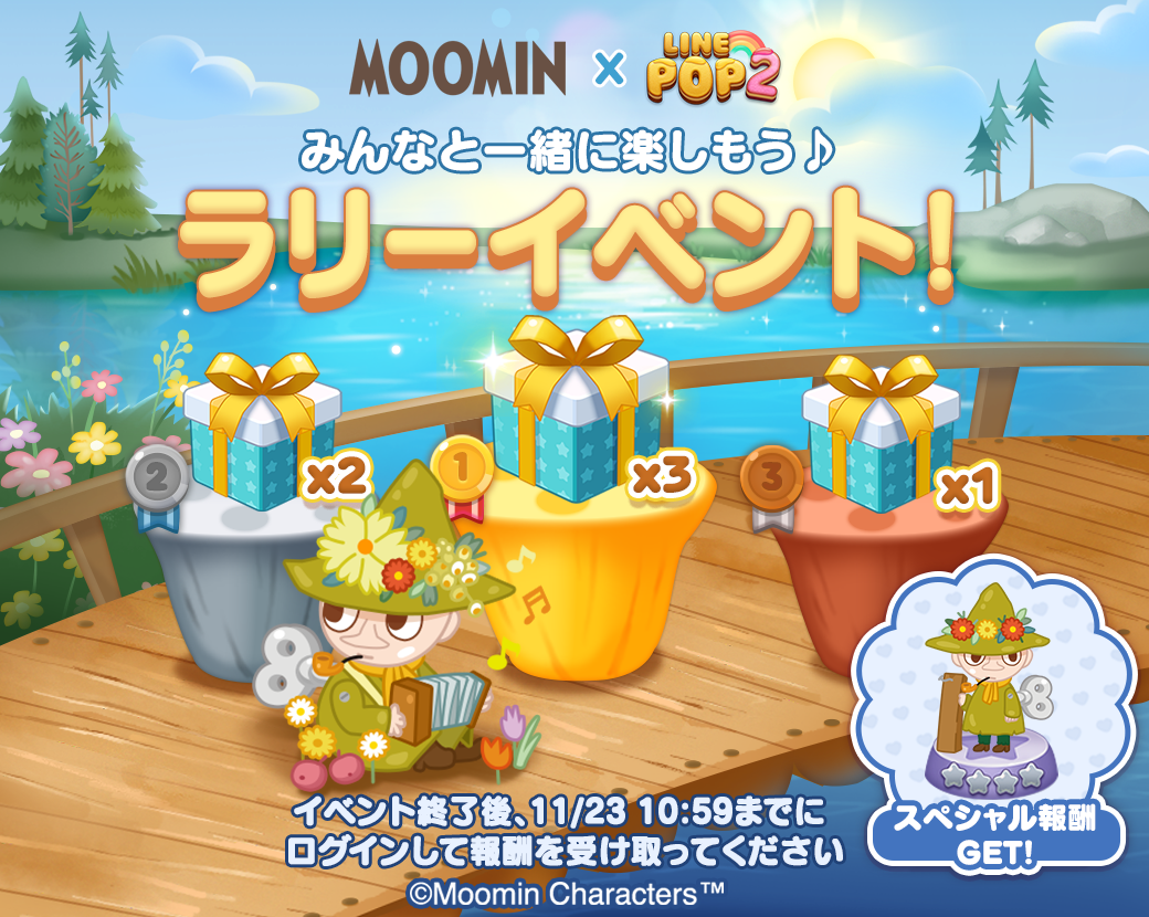 LINEヤフー<4347>は、6角形パズルゲーム「LINE POP2」(iPhone・Android対応/無料)にて、11月1日(金)より『ムーミン』とのコラボレーションイベントを開始した。