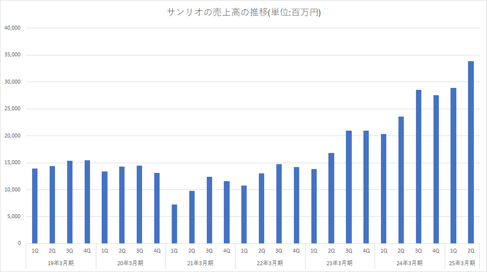 国内の店舗・テーマパークは、50周年を迎える『ハローキティ』の様々な施策や、人気投票イベント「2024年サンリオキャラクター大賞」が過去最多となる5707万票を集めるなど話題を集め、国内客および外国人観光客が大幅に増加し、売上高を押し上げた。