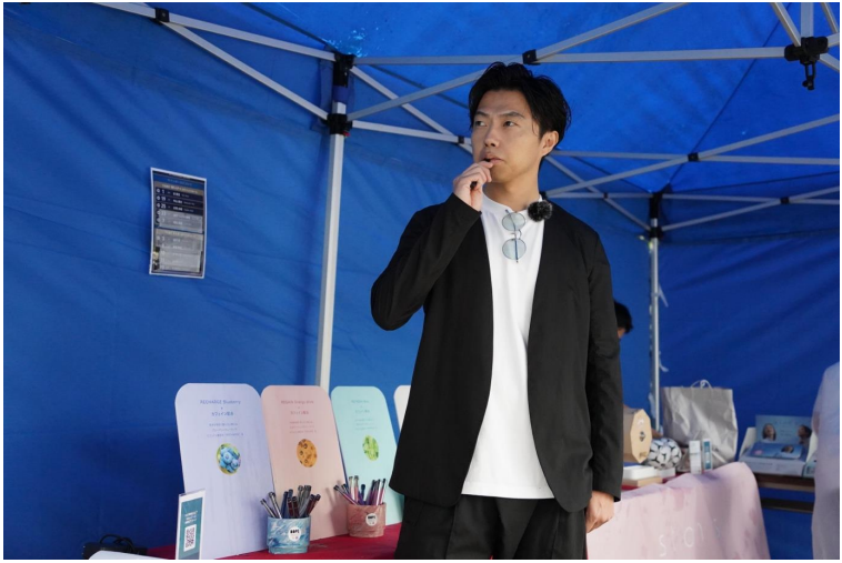 そして、BREATHERがスポンサーをしているシュワーボ東京の監督「Leo the football氏(名久井レオ氏)」にもブースに来場し、「ston s(ストンエス)」を体験した。