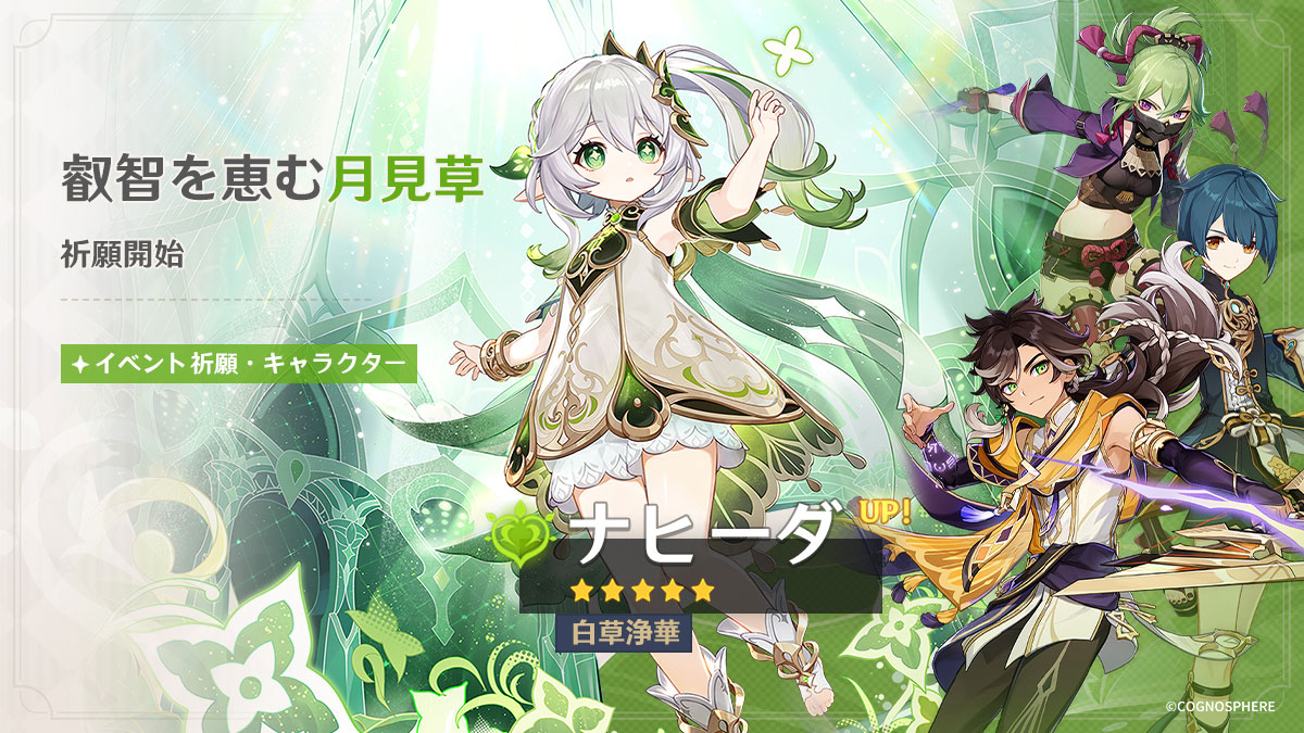 『原神』は10月29日19時より、イベント祈願・キャラクター「叡智を恵む月見草」やイベント祈願・キャラクター2「彼岸満開」を開催。今回、限定★5 「ナヒーダ(草)」、「胡桃(炎)」が登場しており、ユーザーから好評のようだ。