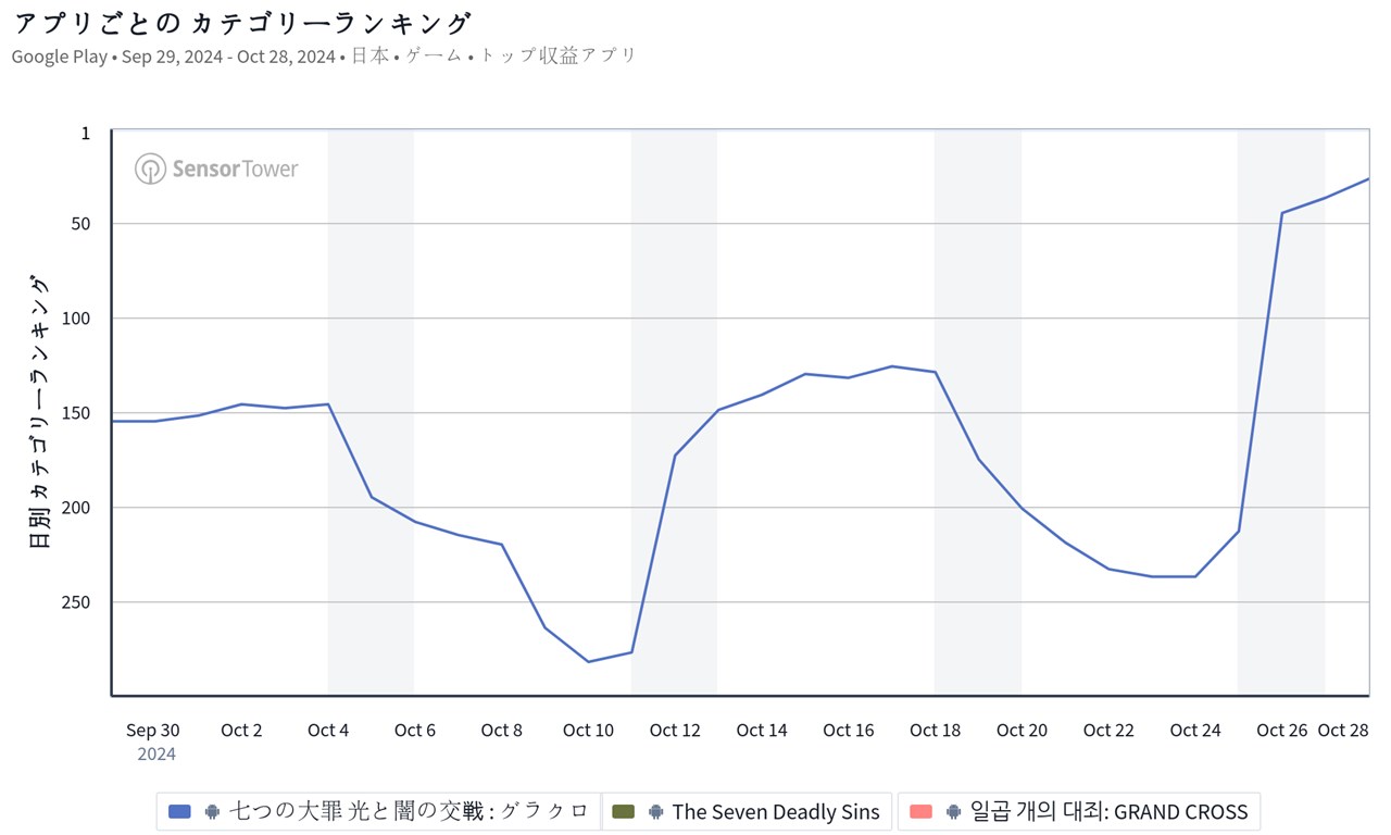 | 27 | ↑10 | 七つの大罪 ~光と闇の交戦~ | Netmarble |