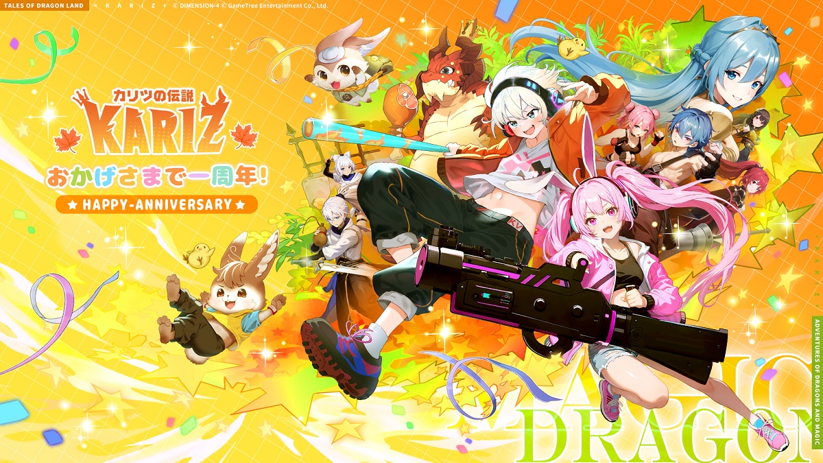 ZlongameとGameTreeは、竜と暮らす冒険RPG『KARIZ -カリツの伝説-』(以下:カリツの伝説、カリツ)が11月8日(金)にアプリ配信開始から一周年を迎えることを記念し、11月6日(水)よりゲーム内・外でアニバーサリーイベントを開催するとともに、『ごろごろにゃんすけ』とのコラボレーションイベントを開始することを発表した。