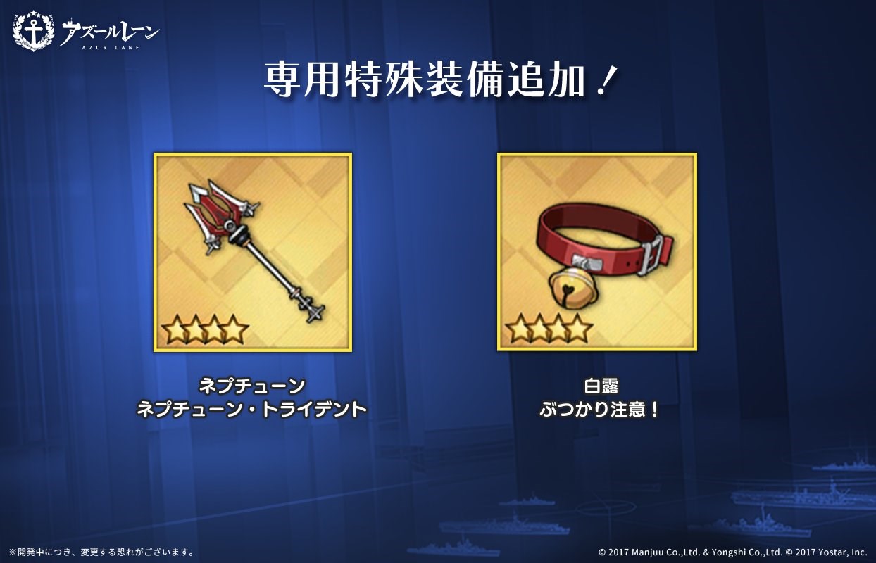 11月7日のメンテナンス後より、下記艦船に専用特殊装備が追加される。