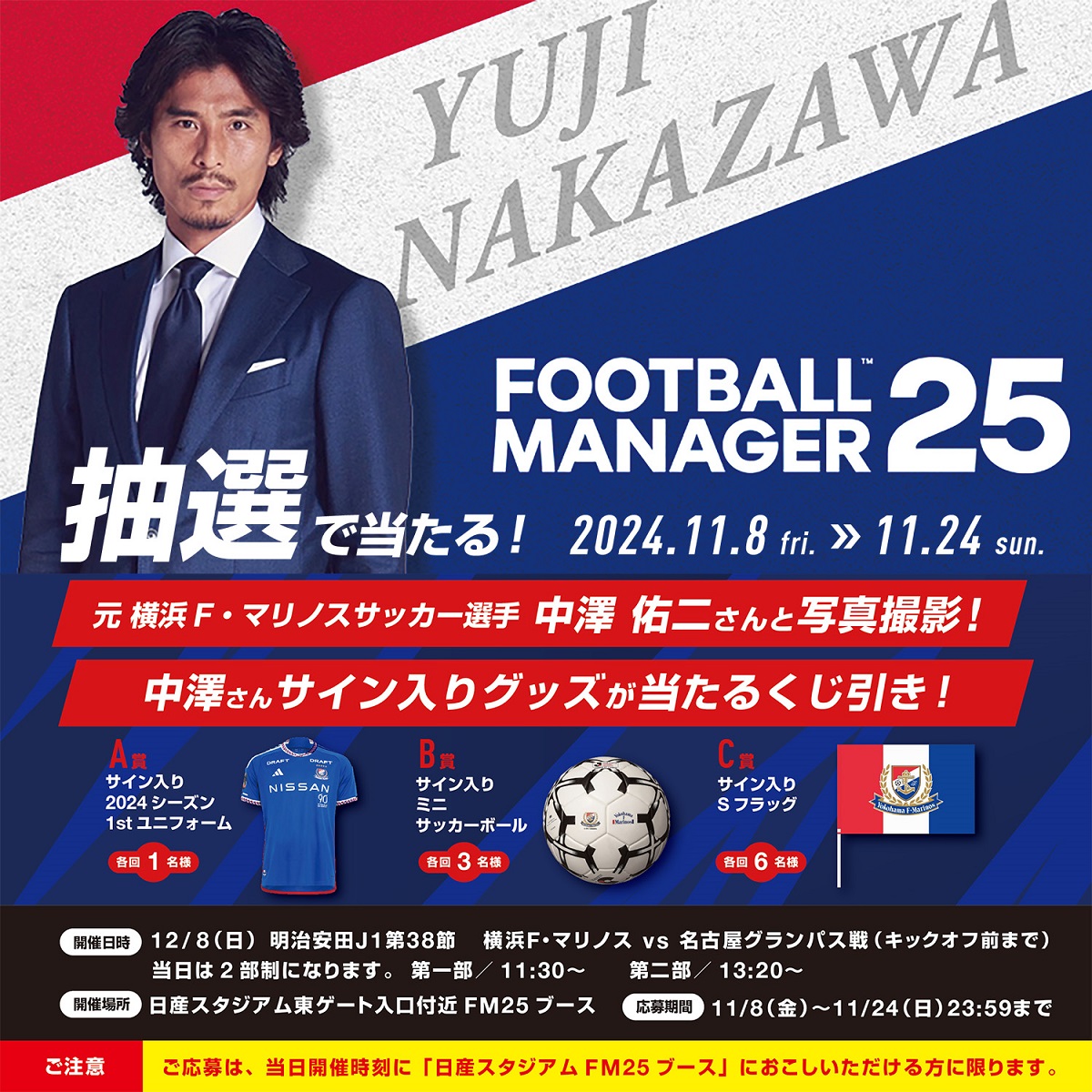 セガ、日産スタジアムで『Football Manager 25』ブースを12月8日に出展…横浜F・マリノスOBの中澤佑二さんとの撮影会参加権があたるXキャンペーン開始