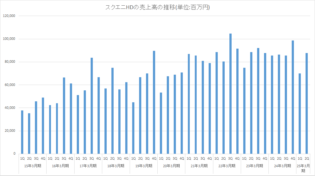HD(High-Definition)ゲームにおいて、『FINAL FANTASY XVI』『ファイナルファンタジー ピクセルリマスター』等を発売した前年と比較して、新作タイトルからの売上が減少したことにより、減収となった。一方で、開発費の償却負担や広告宣伝費が前年から減少したこと等により、営業損失が縮小となった。