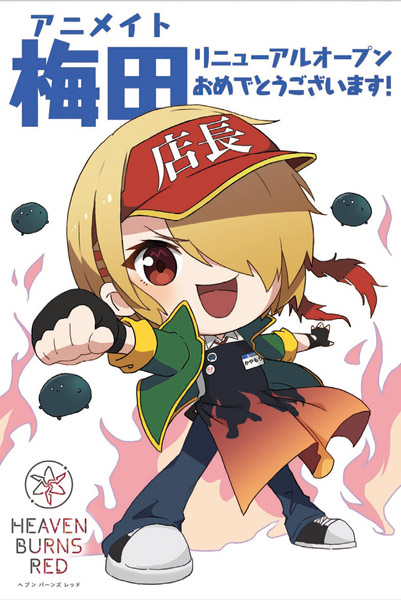 さらに、オープン日からはリニューアルオープン記念の様々なキャンペーンも開催いたします。『MyGO!!!!!×アニメイト梅田リニューアルオープン記念フェア』では、対象商品のご購入で特典として『MyGO!!!!!』のメンバーが描かれた『ミニフォト』のプレゼントやキャスト直筆サイン入りポスターが当たる抽選にご参加いただけます。『ヘブンバーンズレッド』 ポストカード配布キャンペーンでは500円以上(税込)ご購入いただいた方へアニメ店長の衣装を身にまとった茅森月歌のミニキャライラストが描かれた「オリジナルポストカード」をプレゼントいたします。