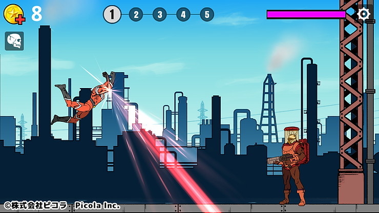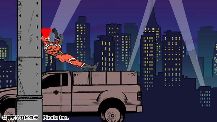 アメリカンコミックスのテイストを盛り込んだ魅力的なキャラクター達を使用して、ジャンプと必殺攻撃だけの簡単操作で激ムズバトルに挑める。