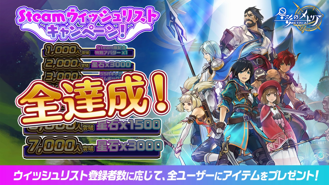 正式版リリースに向け、ウィッシュリスト登録数に応じて豪華アイテムをすべての人にプレゼントする「ウィッシュリスト登録キャンペーン」の追加目標が全達成した。