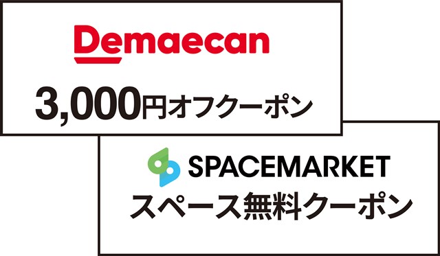 ▲スペースマーケットまたは出前館で使えるクーポン券