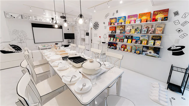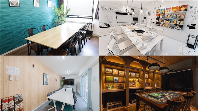 ボードゲーム完備の手ぶらで楽しめるスペースや、広いテーブルのある会議室スペース、パーティー系ゲームを楽しめるおうちスペースなど気分や雰囲気に合わせて、スペースを選ぶことができる。